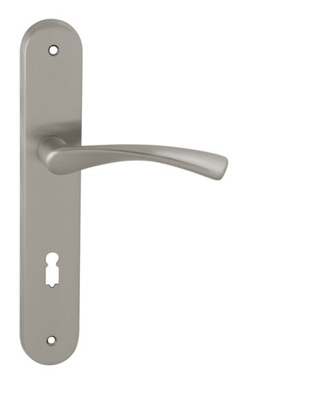 Štítová kľučka na interiérové dvere s oválnym štítom je vyrobená z materiálov vysokej kvality – mosadz / zamak a je povrchovo upravená.