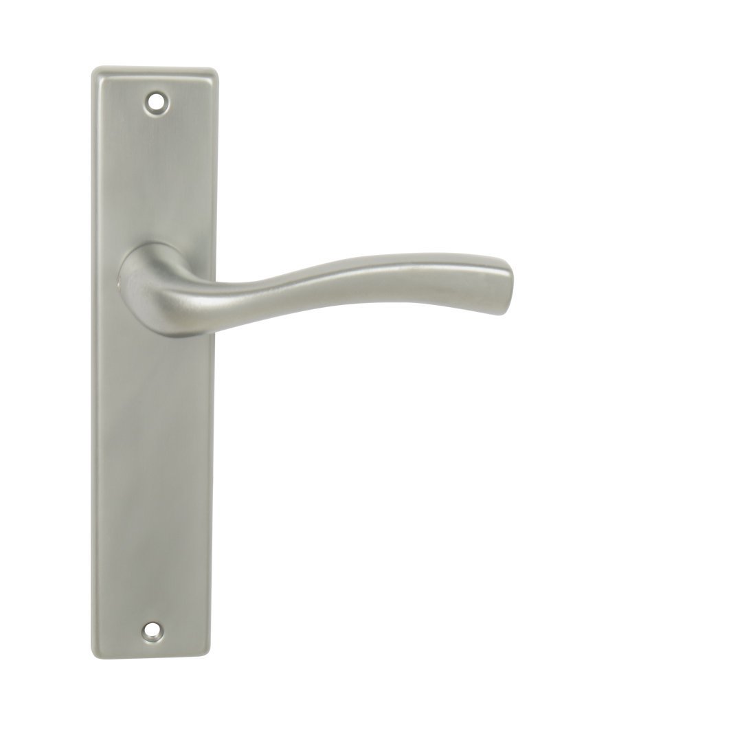 Štítová kľučka na interiérové dvere s hranatým štítom je vyrobená z hliníka a je povrchovo upravená. Kľučka neobsahuje vratný mechanizmus.