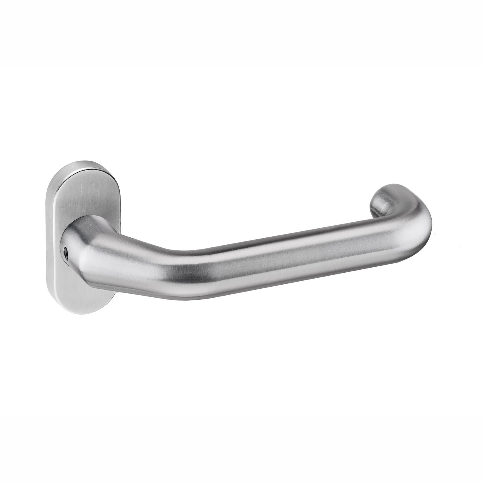 Kľučka na interiérové dvere s úzkou oválnou rozetou je vyrobená z kvalitnej nehrdzavejúcej ocele s povrchovou úpravou.