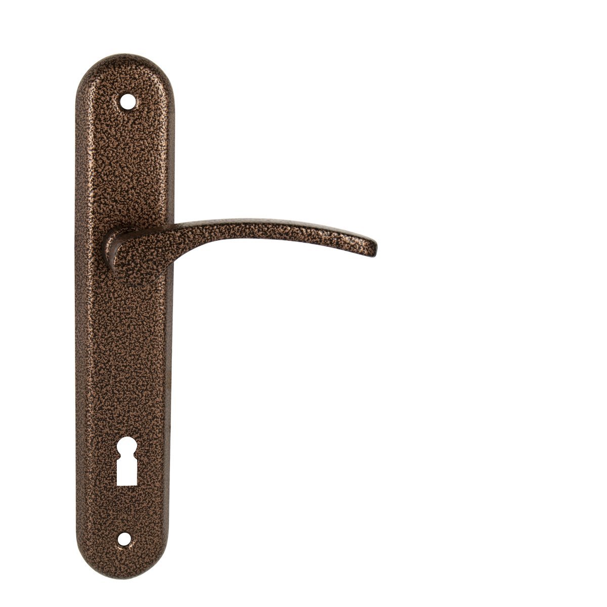 Štítová kľučka na interiérové dvere s oválnym štítom je vyrobená z hliníka a je povrchovo upravená. Kľučka neobsahuje vratný mechanizmus.