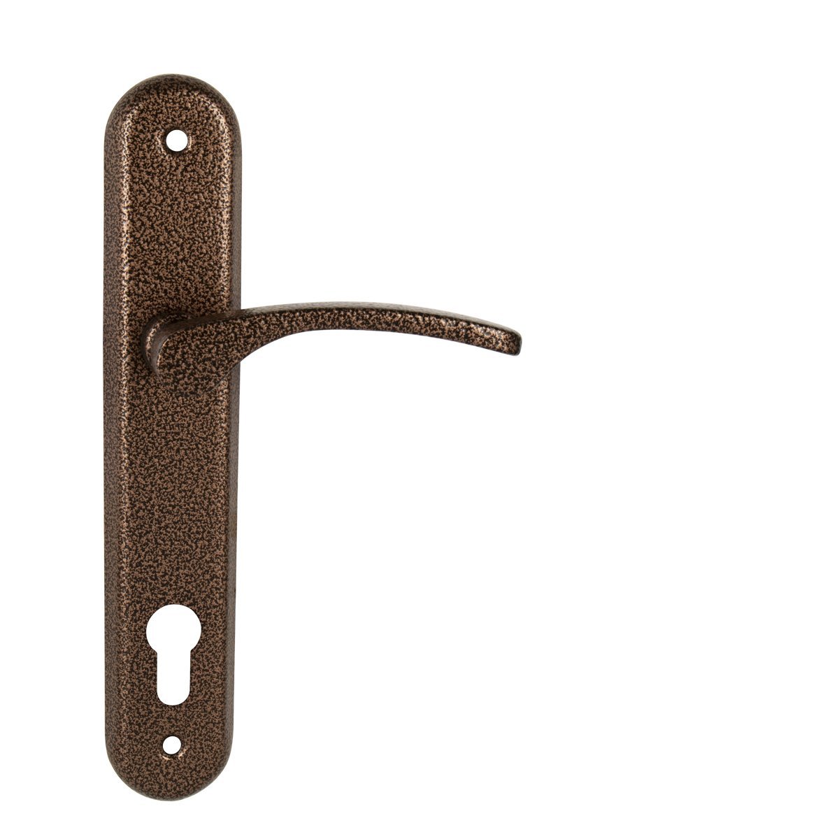 Štítová kľučka na interiérové dvere s oválnym štítom je vyrobená z hliníka a je povrchovo upravená. Kľučka neobsahuje vratný mechanizmus.