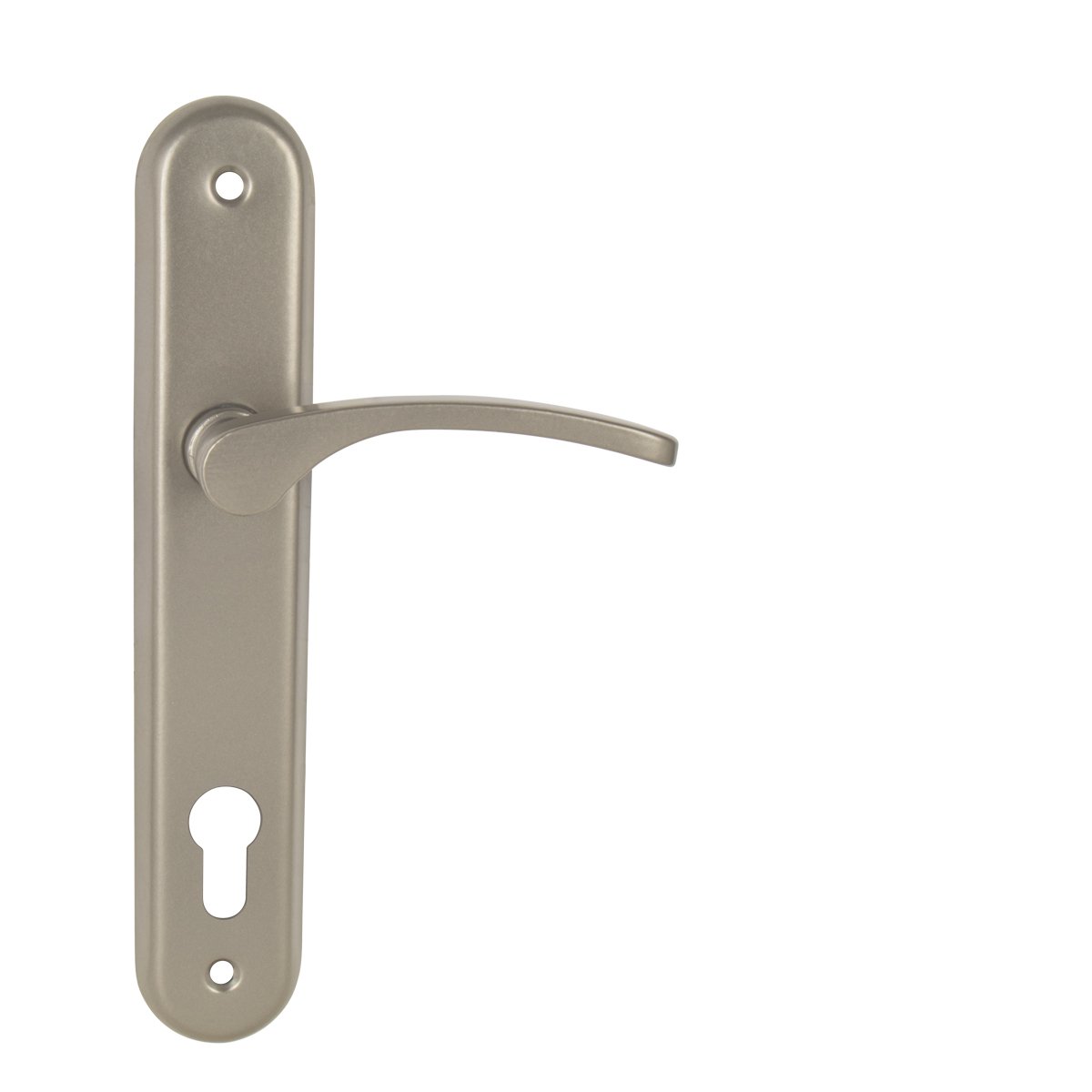 Štítová kľučka na interiérové dvere s oválnym štítom je vyrobená z hliníka a je povrchovo upravená. Kľučka neobsahuje vratný mechanizmus.