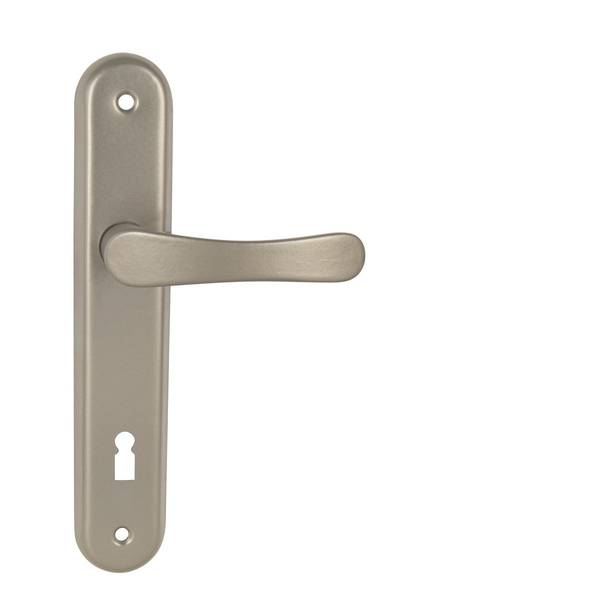 Štítová kľučka na interiérové dvere s oválnym štítom je vyrobená z hliníka a je povrchovo upravená. Kľučka neobsahuje vratný mechanizmus.