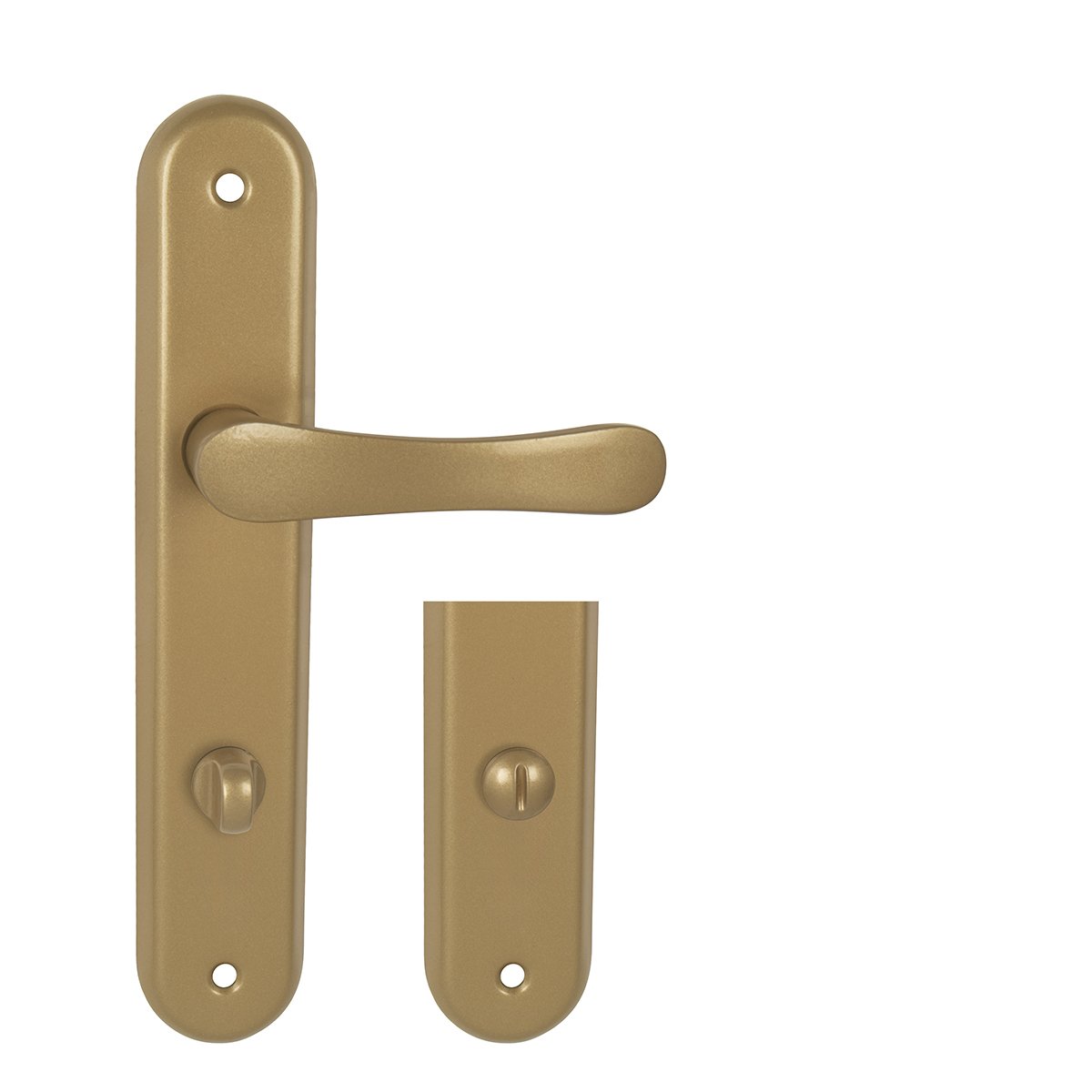 Štítová kľučka na interiérové dvere s oválnym štítom je vyrobená z hliníka a je povrchovo upravená. Kľučka neobsahuje vratný mechanizmus.