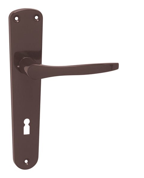 Štítová kľučka na interiérové dvere s oválnym štítom je vyrobená z hliníka a je povrchovo upravená. Kľučka neobsahuje vratný mechanizmus.