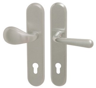 Štítová kľučka na vchodové a bezpečnostné dvere so spevneným oválnym štítom bez prekrytia cylindrickej vložky je vyrobená z materiálov vysokej kvality – mosadz a je povrchovo upravená.