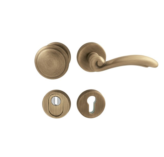 Rozetová kľučka na vchodové a bezpečnostné dvere so spevnenou okrúhlou rozetou s prekrytím cylindrickej vložky je vyrobená z materiálov vysokej kvality – mosadz a je povrchovo upravená. Okrúhla rozeta má priemer 52 mm a hrúbku 11 mm.