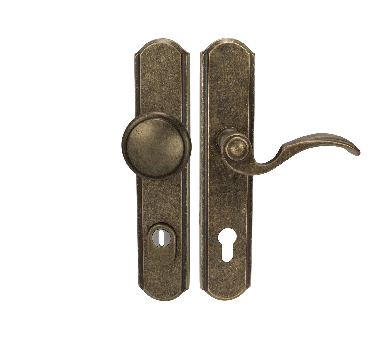 Štítová kľučka na vchodové a bezpečnostné dvere so spevneným rustikálnym štítom s prekrytím cylindrickej vložky je vyrobená z materiálov vysokej kvality – mosadz a je povrchovo upravená. Rustikálny štít má rozmery 51 mm x 250 mm a hrúbku 12 mm.