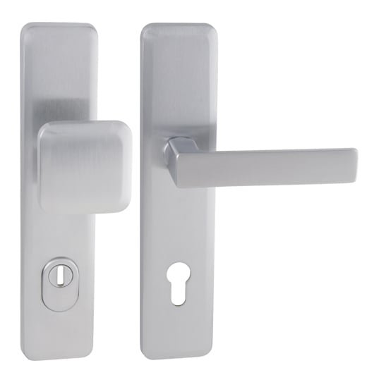 Štítová kľučka na vchodové a bezpečnostné dvere so spevneným hranatým štítom s prekrytím cylindrickej vložky je vyrobená z materiálov vysokej kvality – mosadz a je povrchovo upravená. Hranatý štít má rozmery 55 mm x 250 mm a hrúbku 12 mm.