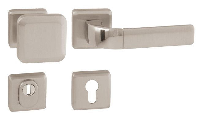 Rozetová kľučka na vchodové a bezpečnostné dvere so spevnenou hranatou rozetou s prekrytím cylindrickej vložky je vyrobená z materiálov vysokej kvality – mosadz a je povrchovo upravená. Hranatá rozeta má rozmery 53 mm x 53 mm a hrúbku 12 mm.