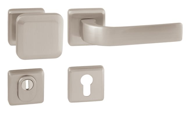 Rozetová kľučka na vchodové a bezpečnostné dvere so spevnenou hranatou rozetou s prekrytím cylindrickej vložky je vyrobená z materiálov vysokej kvality – mosadz a je povrchovo upravená. Hranatá rozeta má rozmery 53 mm x 53 mm a hrúbku 12 mm.