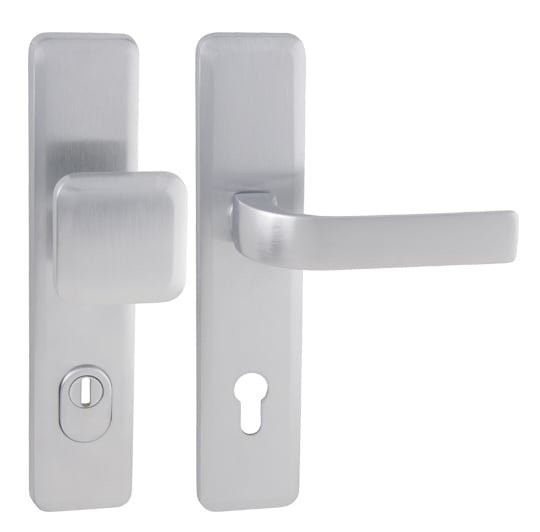 Štítová kľučka na vchodové a bezpečnostné dvere so spevneným hranatým štítom s prekrytím cylindrickej vložky je vyrobená z materiálov vysokej kvality – mosadz a je povrchovo upravená. Hranatý štít má rozmery 55 mm x 250 mm a hrúbku 12 mm.