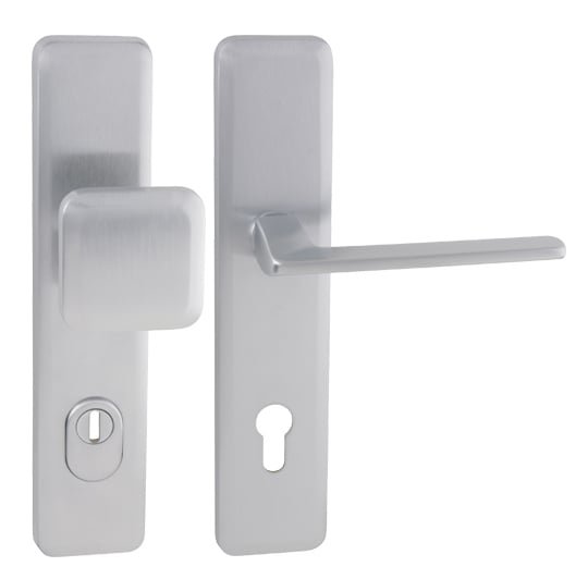 Štítová kľučka na vchodové a bezpečnostné dvere so spevneným hranatým štítom s prekrytím cylindrickej vložky je vyrobená z materiálov vysokej kvality – mosadz a je povrchovo upravená. Hranatý štít má rozmery 55 mm x 250 mm a hrúbku 12 mm.