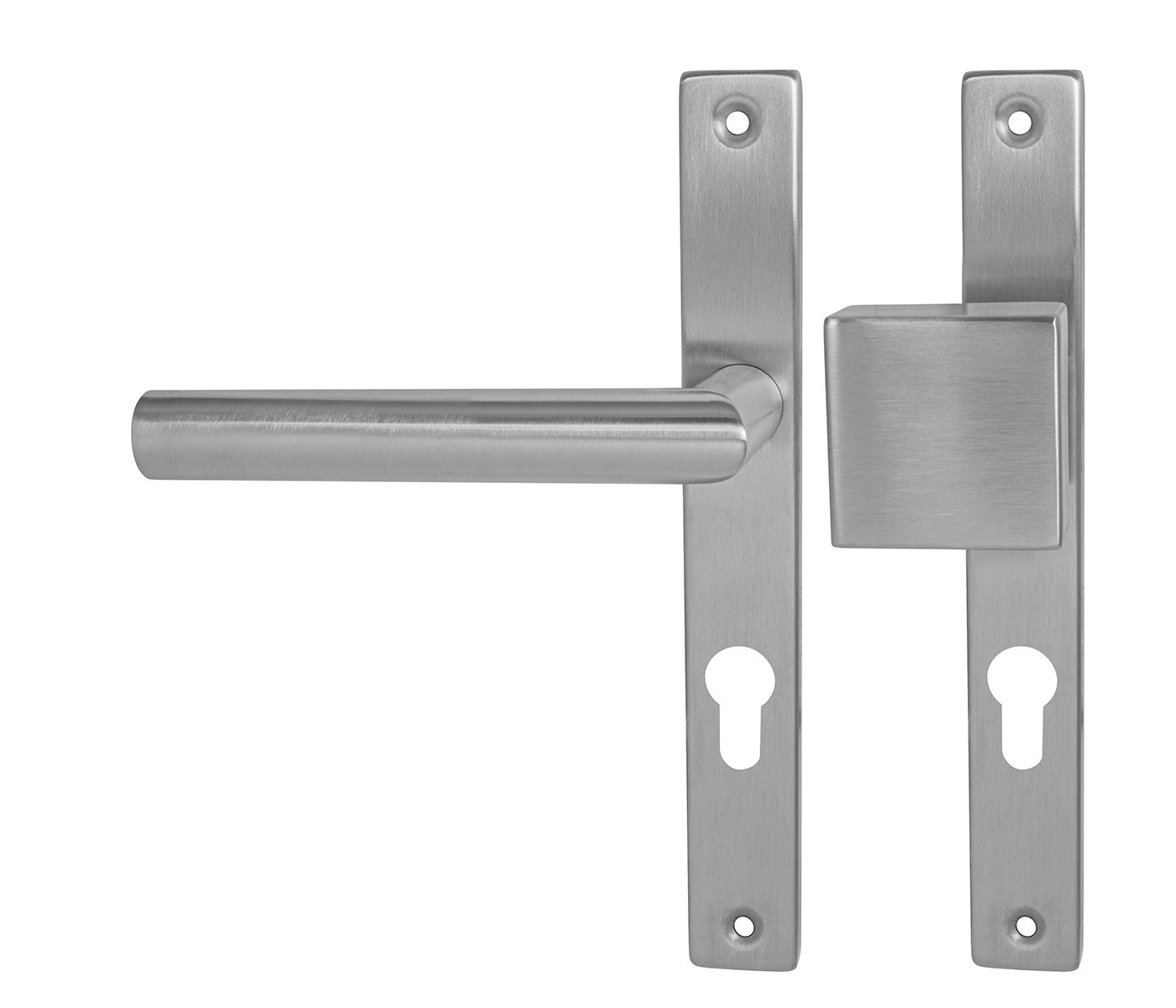 Štítová kľučka na interiérové dvere s úzkym hranatým štítom je vyrobená z vysokokvalitnej nehrdzavejúcej ocele, známej ako nerez a je povrchovo upravená.