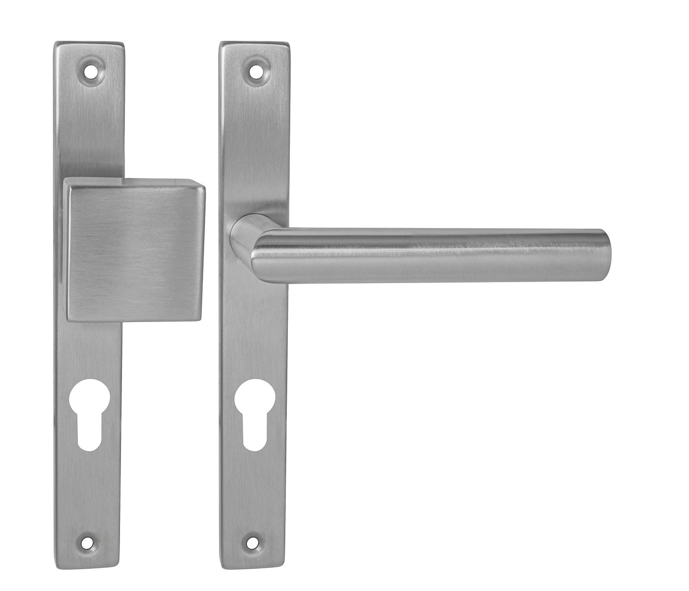 Štítová kľučka na interiérové dvere s úzkym hranatým štítom je vyrobená z vysokokvalitnej nehrdzavejúcej ocele, známej ako nerez a je povrchovo upravená.