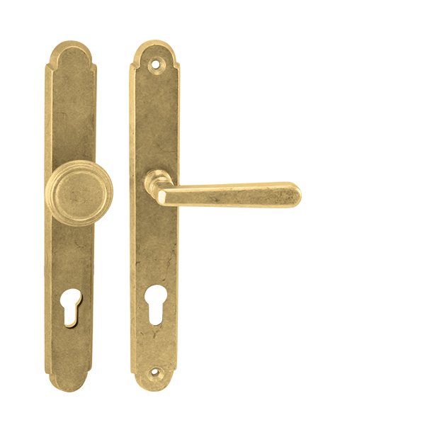 Štítová kľučka na vchodové a bezpečnostné dvere so spevneným rustikálnym štítom bez prekrytia cylindrickej vložky je vyrobená z materiálov vysokej kvality – mosadz a je povrchovo upravená. Rustikálny štít má rozmery 38 mm x 280 mm a hrúbku 11 mm.