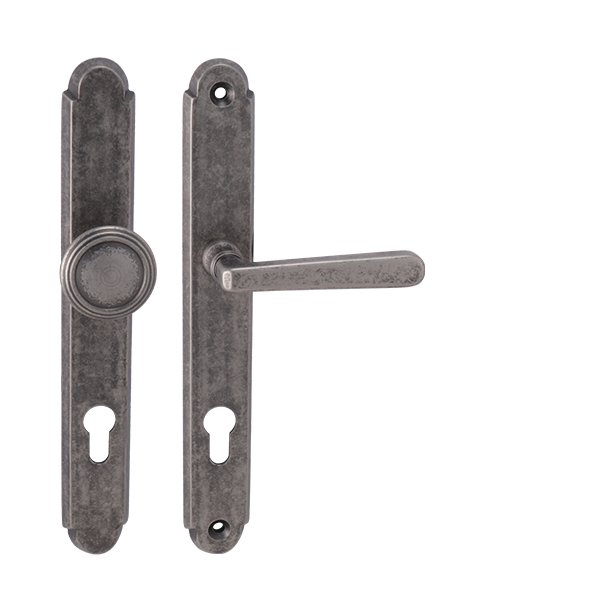 Štítová kľučka na vchodové a bezpečnostné dvere so spevneným rustikálnym štítom bez prekrytia cylindrickej vložky je vyrobená z materiálov vysokej kvality – mosadz a je povrchovo upravená. Rustikálny štít má rozmery 38 mm x 280 mm a hrúbku 11 mm.