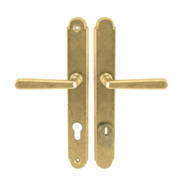 Štítová kľučka na vchodové a bezpečnostné dvere so spevneným rustikálnym štítom s prekrytím cylindrickej vložky je vyrobená z materiálov vysokej kvality – mosadz a je povrchovo upravená. Rustikálny štít má rozmery 38 mm x 280 mm a hrúbku 11 mm.
