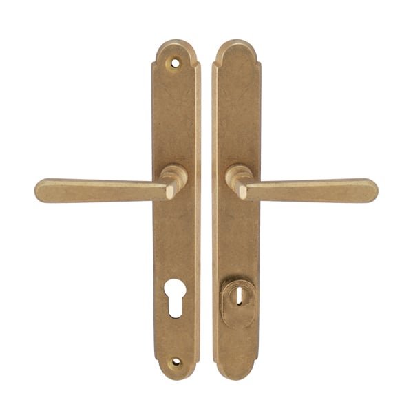 Štítová kľučka na vchodové a bezpečnostné dvere so spevneným rustikálnym štítom s prekrytím cylindrickej vložky je vyrobená z materiálov vysokej kvality – mosadz a je povrchovo upravená. Rustikálny štít má rozmery 38 mm x 280 mm a hrúbku 11 mm.