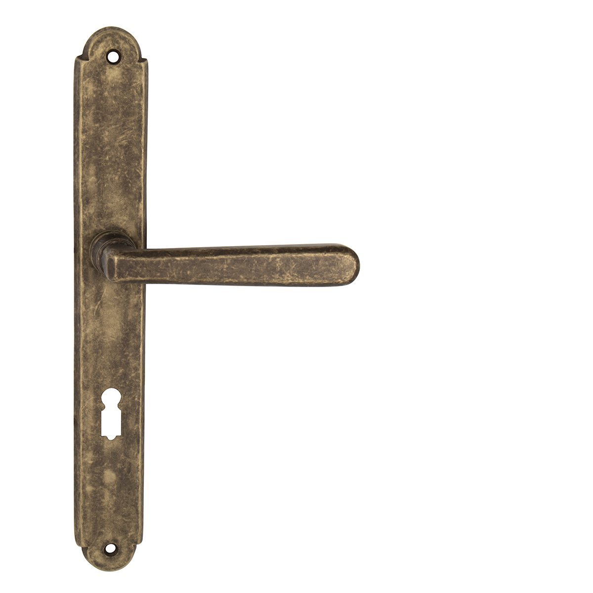 Štítová kľučka na interiérové dvere s rustikálnym štítom je vyrobená z materiálov vysokej kvality – mosadz a je povrchovo upravená. Rustikálny štít má rozmery 32 mm x 255 mm a kľučka obsahuje vratný mechanizmus.