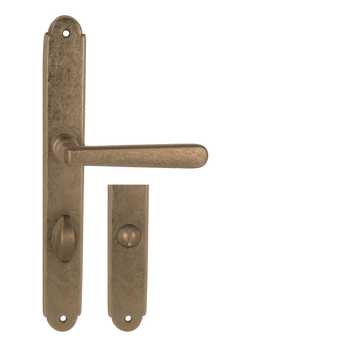 Štítová kľučka na interiérové dvere s rustikálnym štítom je vyrobená z materiálov vysokej kvality – mosadz a je povrchovo upravená. Rustikálny štít má rozmery 32 mm x 255 mm a kľučka obsahuje vratný mechanizmus.