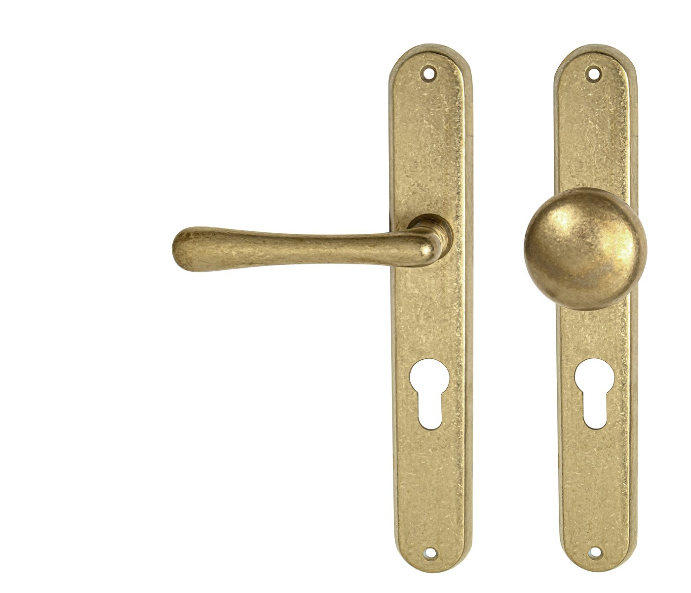 Štítová kľučka na interiérové dvere s oválnym štítom je vyrobená z materiálov vysokej kvality – mosadz a je povrchovo upravená. Oválny štít má rozmery 37 mm x 240 mm a kľučka obsahuje vratný mechanizmus.