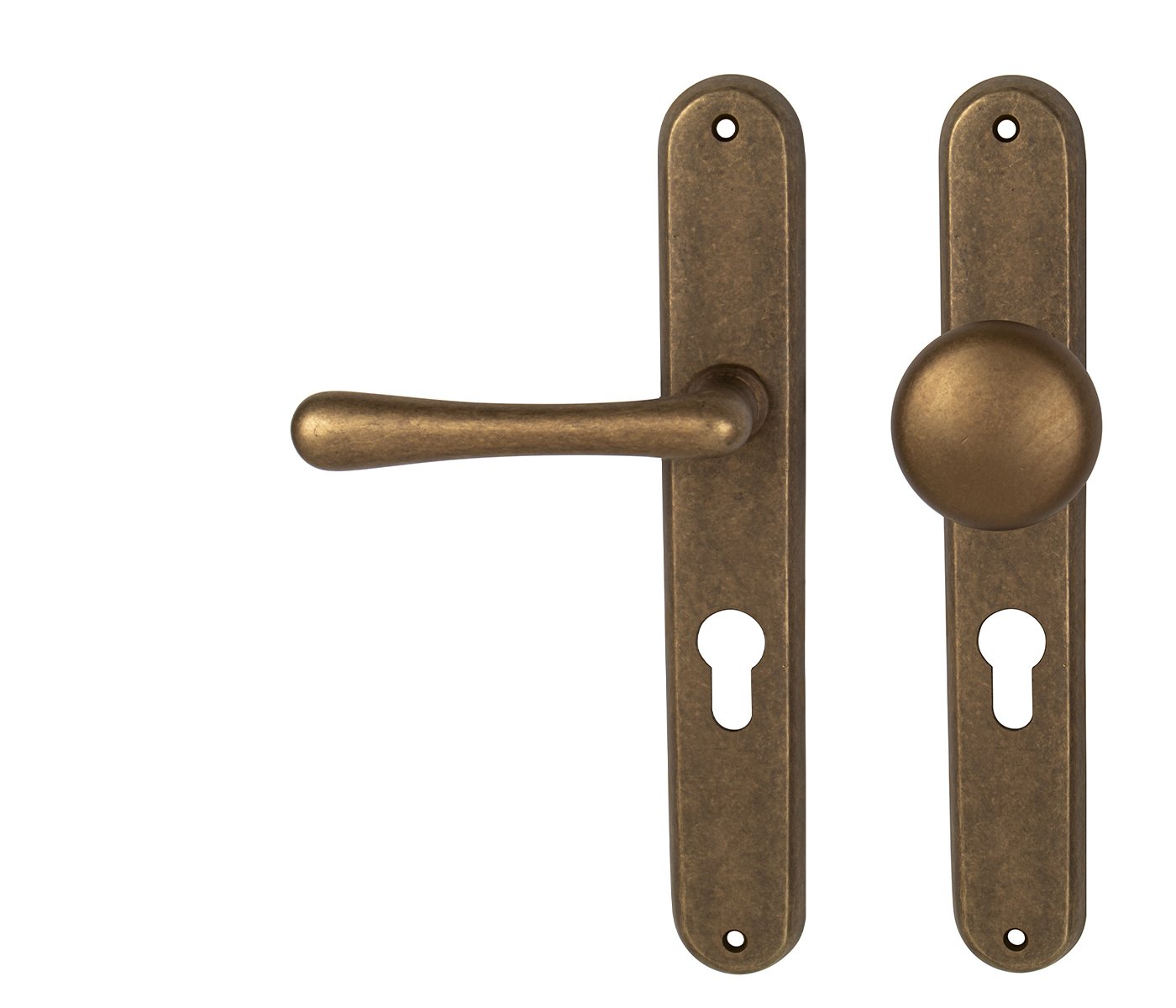 Štítová kľučka na interiérové dvere s oválnym štítom je vyrobená z materiálov vysokej kvality – mosadz a je povrchovo upravená. Oválny štít má rozmery 37 mm x 240 mm a kľučka obsahuje vratný mechanizmus.