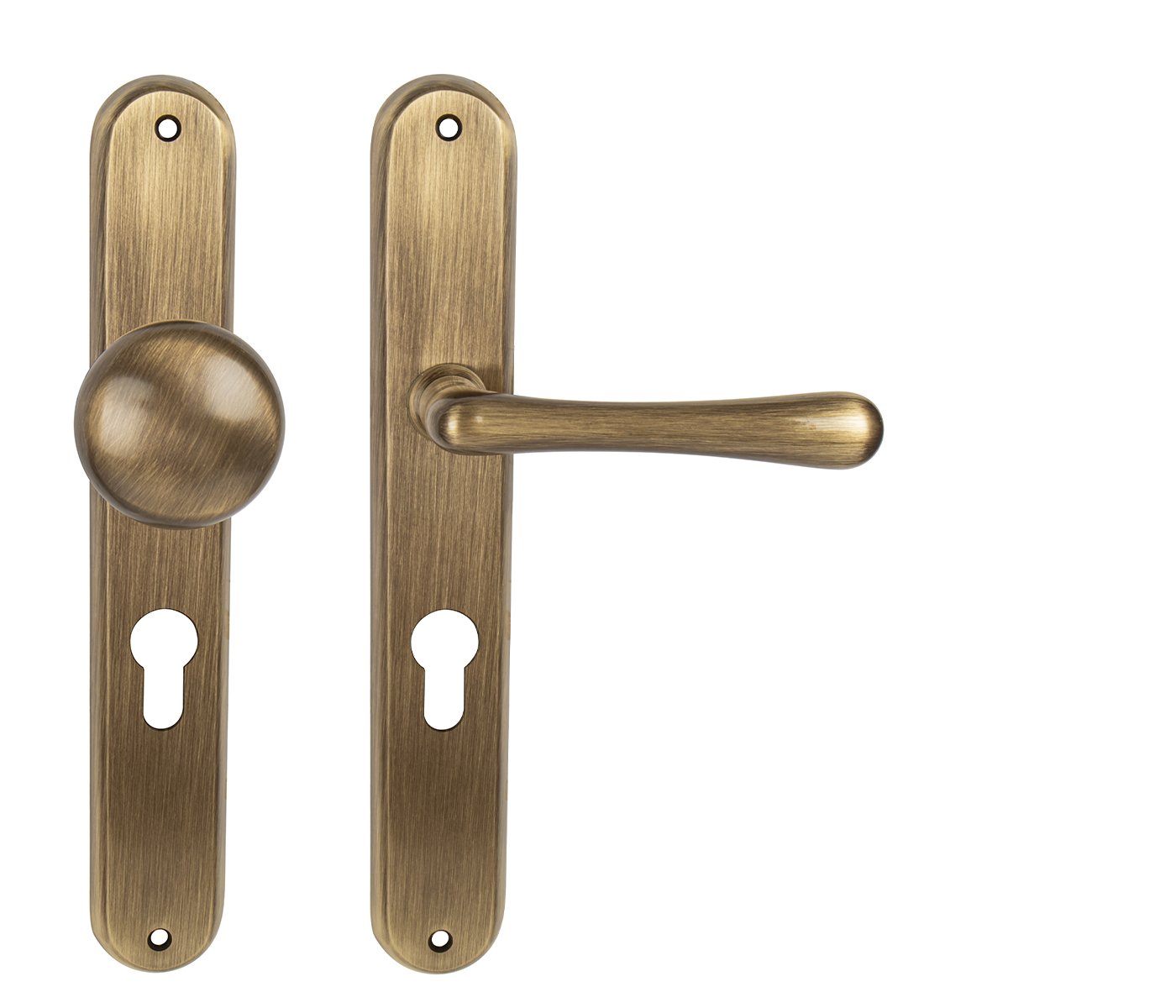 Štítová kľučka na interiérové dvere s oválnym štítom je vyrobená z materiálov vysokej kvality – mosadz a je povrchovo upravená. Oválny štít má rozmery 37 mm x 240 mm a kľučka obsahuje vratný mechanizmus.