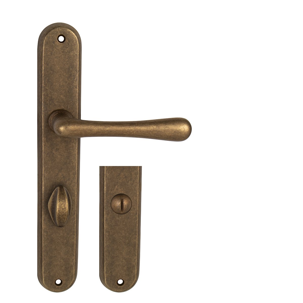 Štítová kľučka na interiérové dvere s oválnym štítom je vyrobená z materiálov vysokej kvality – mosadz a je povrchovo upravená. Oválny štít má rozmery 37 mm x 240 mm a kľučka obsahuje vratný mechanizmus.