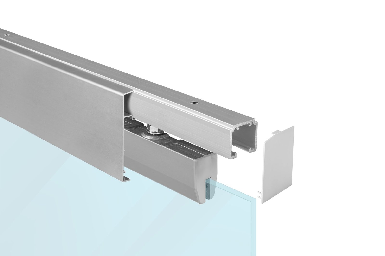 Balenie posuvného systému SILENT GLASS obsahuje krytky na prekrytie držiakov skla, ale je možné dokúpiť si samostatne hliníkový kryt ART.0170 na prekrytie celej šírky sklených dverí. Hliníkový kryt GLASS hornej hrany skla je potrebné kúpiť v šírke skla pre vnútornú aj vonkajšiu stranu (2 krát šírka krídla sklených dverí).