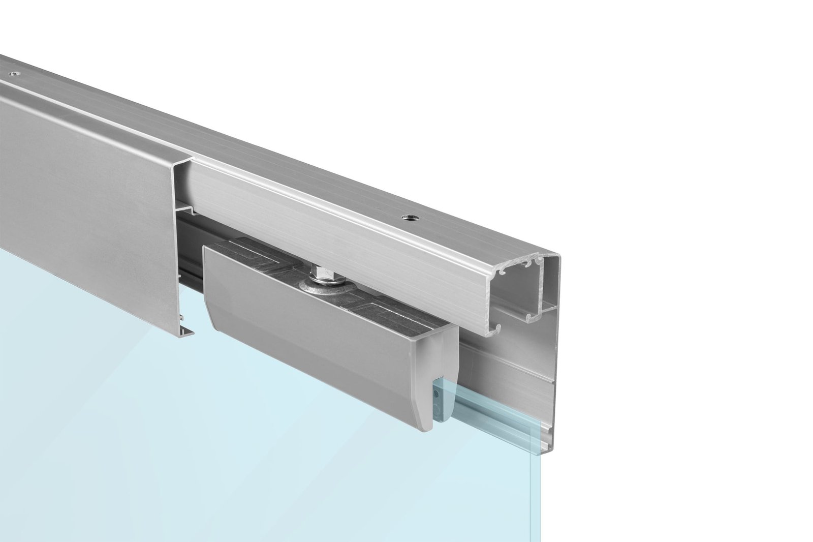 Balenie posuvného systému SILENT GLASS obsahuje krytky na prekrytie držiakov skla, ale je možné dokúpiť si samostatne hliníkový kryt ART.0170 na prekrytie celej šírky sklených dverí. Hliníkový kryt GLASS hornej hrany skla je potrebné kúpiť v šírke skla pre vnútornú aj vonkajšiu stranu (2 krát šírka krídla sklených dverí).