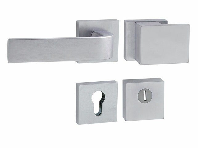 Bezpečnostná interiérová rozetová kľučka na vchodové a bezpečnostné dvere s hranatou rozetou s prekrytím cylindrickej vložky je vyrobená z materiálov vysokej kvality – zamak / oceľ a je povrchovo upravená. Hranatá rozeta má rozmery 52 mm x 52 mm (resp. 55 mm x 52 mm) a hrúbku 17 mm.