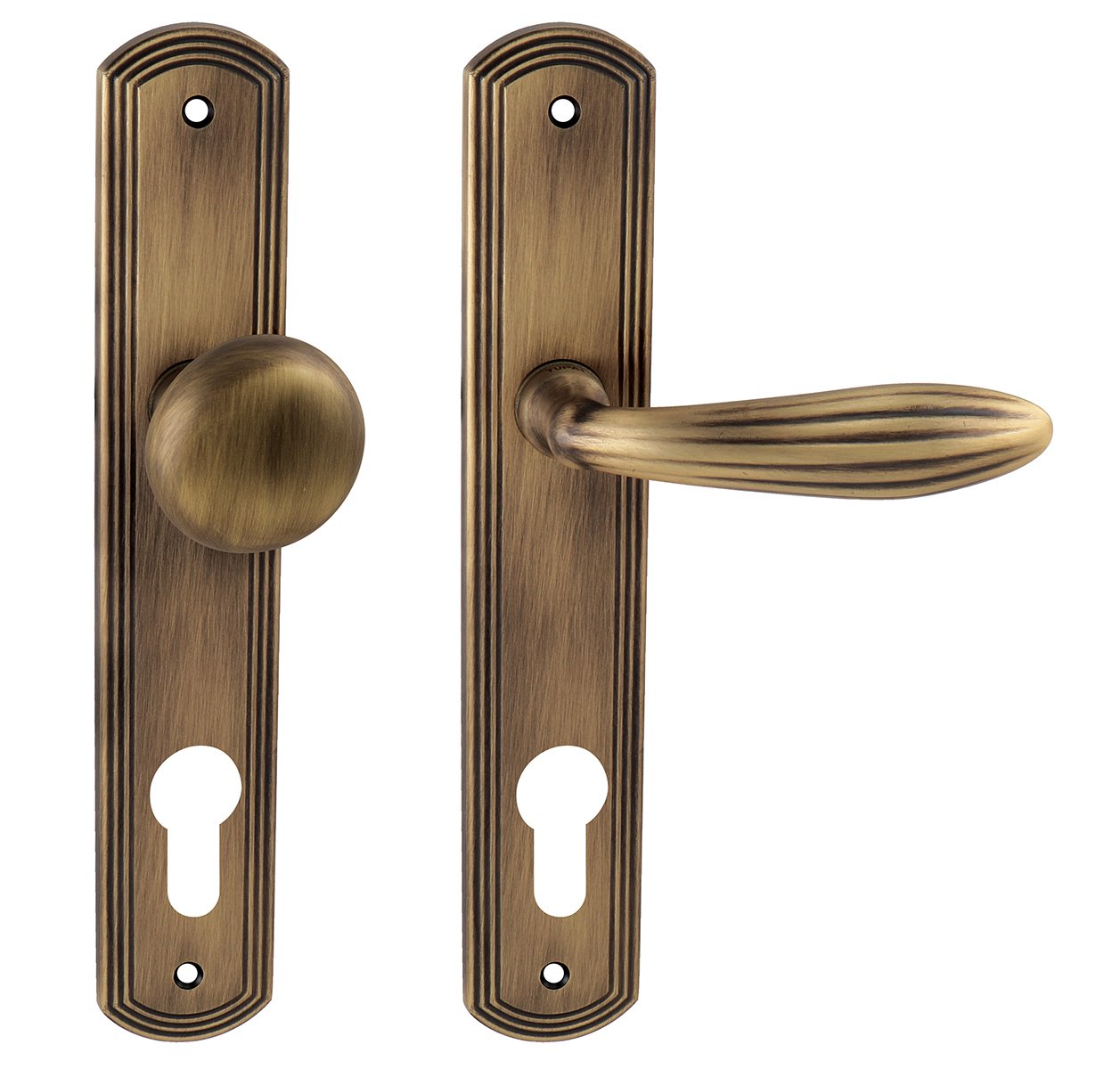 Štítová kľučka na interiérové dvere s rustikálnym štítom je vyrobená z materiálov vysokej kvality – mosadz a je povrchovo upravená. Rustikálny štít má rozmery 46 mm x 260 mm a kľučka obsahuje vratný mechanizmus.